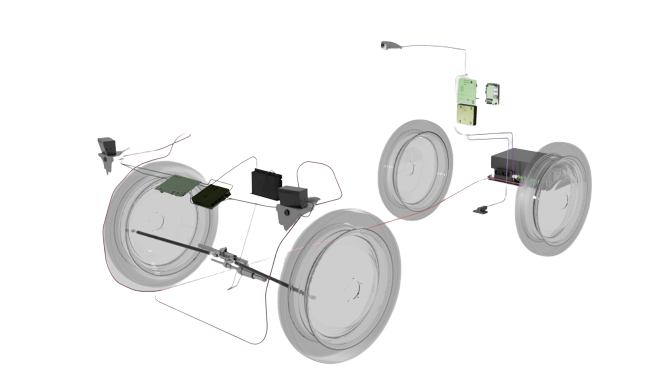 - Lateral and Longitudinal Vehicle Control (steering actuator and electric motors) by self-developed software written in Matlab/Simulink