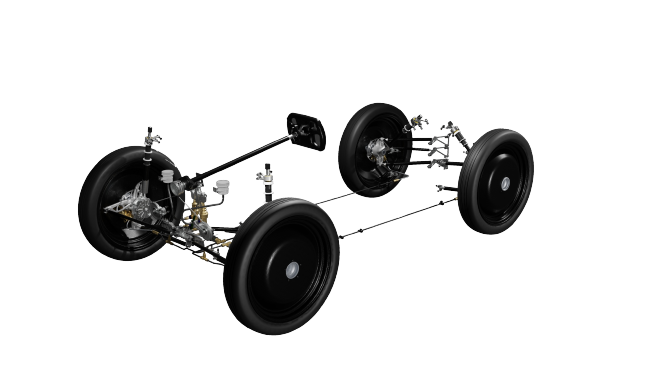 - Dual-circuit, four-disc hydraulic brake system optimized for low weight